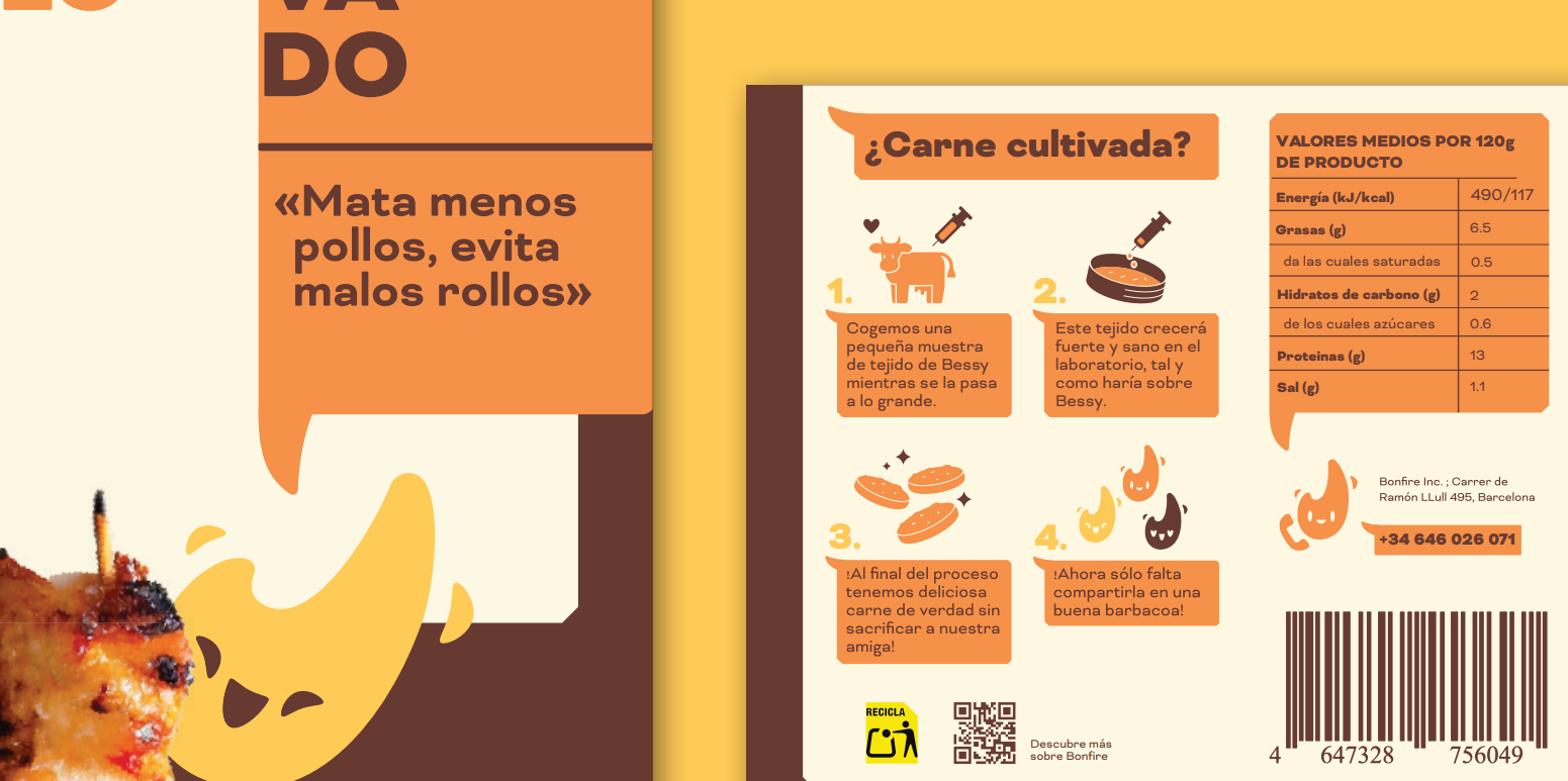 Though the packagings were designed using everyday meat packagings as a template, research told us it was important to be as upfront and transparent as possible about the origins of the products. The FOPs don’t shy away from the CULTURED label, while the BOPs are used to convey the process which allows this meat to be grown in a lab and reassure people that its exatly like naturally grown meat, in both texture, smell, and taste. All the delicious parts of meat with none of the badies, Flint approved!
